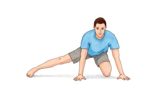 o 随着身体重心的下沉,感受大腿内侧(内收肌)的拉伸。