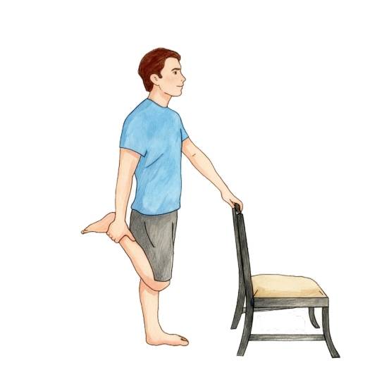 o 感受右侧大腿前侧(股四头肌)的拉伸。