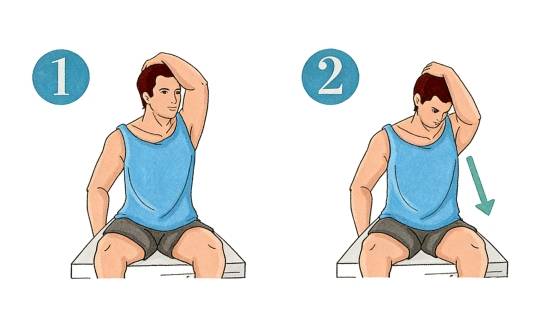 · 动作: 坐姿,一手抓椅,下巴收向胸部,头转向一侧肩,另一手辅助将头向下推向腋窝方向。感受颈部侧面的拉伸。保持15-20秒,每侧3次。