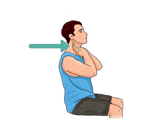 · 动作: 一手收下巴,另一手置于脑后,辅助将头缓慢下拉至胸前。保持20-30秒,重复3次。