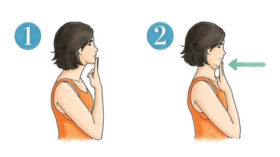 · 动作: 双指置于下巴下方,轻轻收紧下巴,同时将头部向后回缩。保持3-5秒,放松。重复10次,3组。