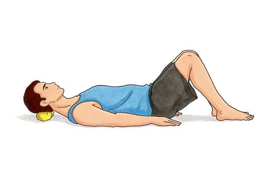 · 方法: 将两个网球置于袜子中,仰卧,将网球置于颅骨下方,通过身体移动找到压痛点,保持1-2分钟。