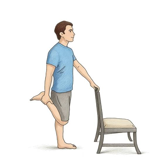 1. 站直,用左手扶椅子或桌子保持平衡。