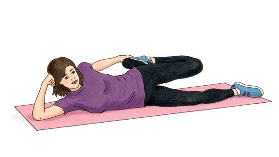 1. 侧身躺下,双腿上下叠放。