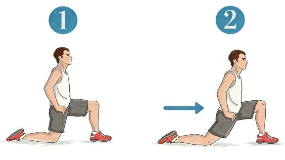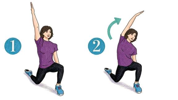 1. 做左腿前弓步,左膝微微弯曲。
