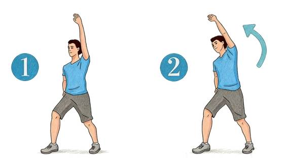 3. 右臂伸直向上举起。