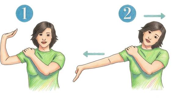 · 对侧手扶同侧肩部